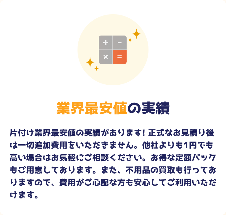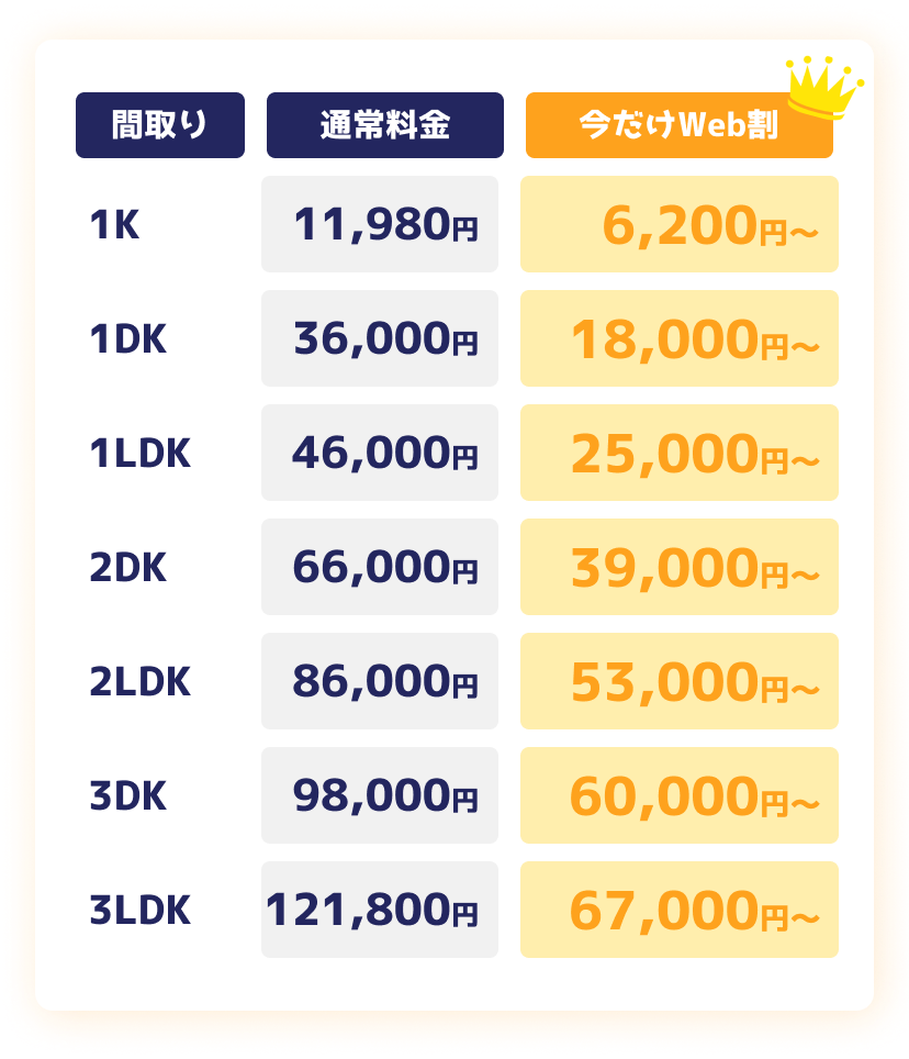 パック料金は3階までの階段の作業日が含まれております。 4階からの階段での作業ですと階段料金がかかりますので、 事前に3階以下まで降ろして頂ければ費用はかかりません。 また、狭くて大型車が駐車できない場合、少し離れた場所に駐車する必要があります。 お住いの場所から、駐車場まで持ち運ぶ距離がある場合に掛かる料金となります。 お問い合わせいただいた際に、お客様のお住いの状況を確認させていただきます。
