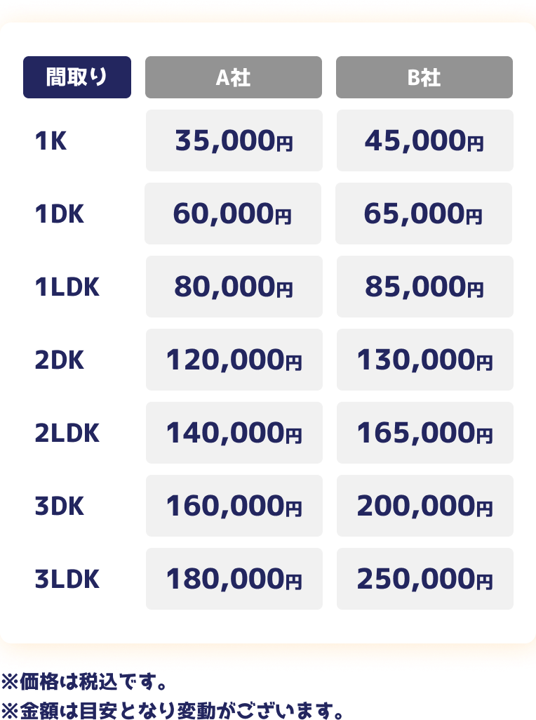 幅・奥行・高さをご入力いただくと、より正確なお見積もりがお出しできます。