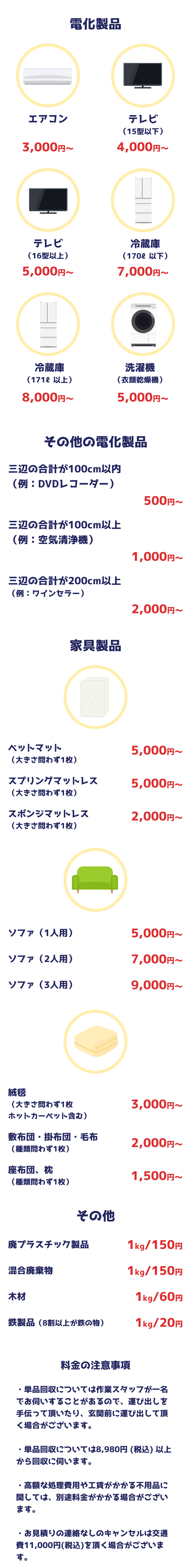 下記項目は回収対象外となってしまいますのでご了承ください。