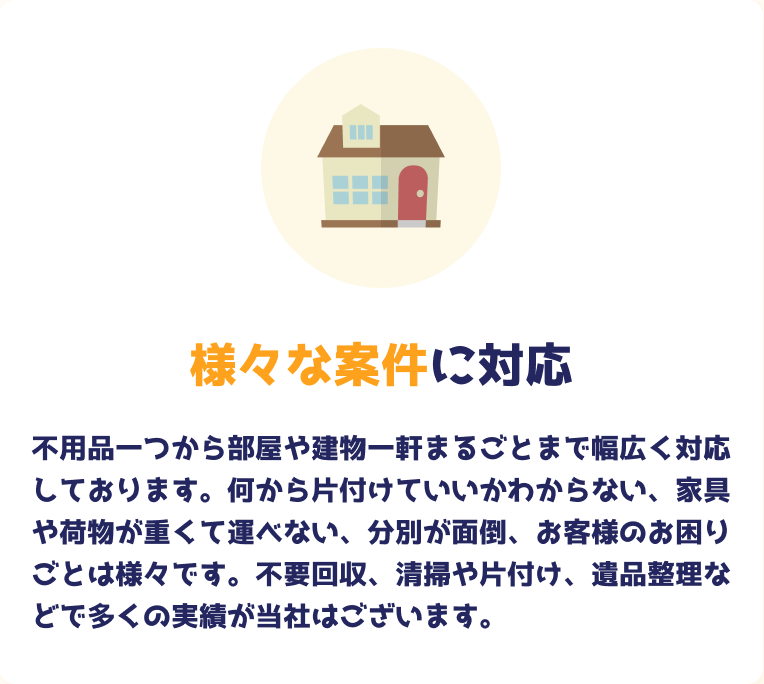 生ゴミ、液体類、商品類、土、ブロック、生木、砂、汚物など