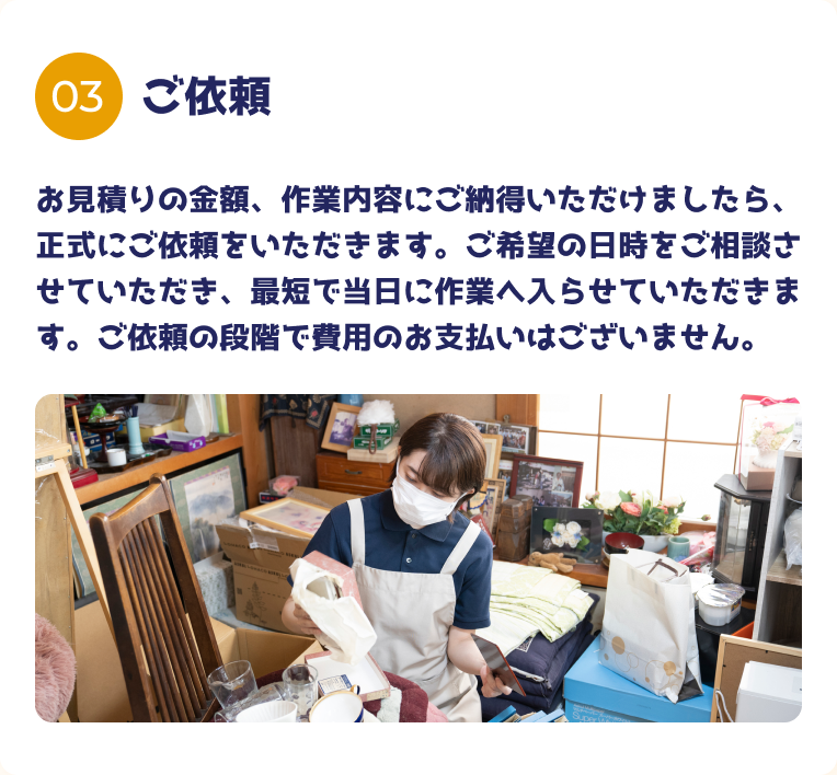 大変申し訳ございませんが、一度回収してしまった物はお返しすることができかねてしまいます。 そのようなことが起きないよう、回収作業をする際にお荷物の確認をさせていただきます。